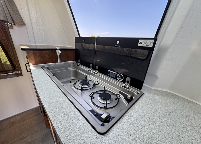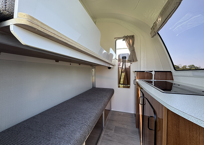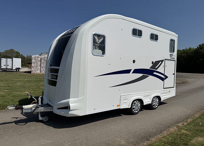 The Night-Treka carries two horses rear facing in safety and comfort. The separate living area is complete with hob, sink, wardrobe, fold down table and bench seat which converts to bunks, making it ideal for weekends away.